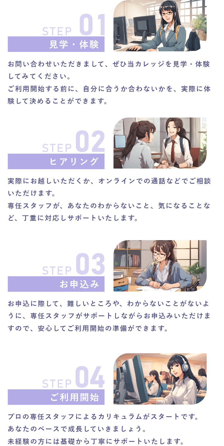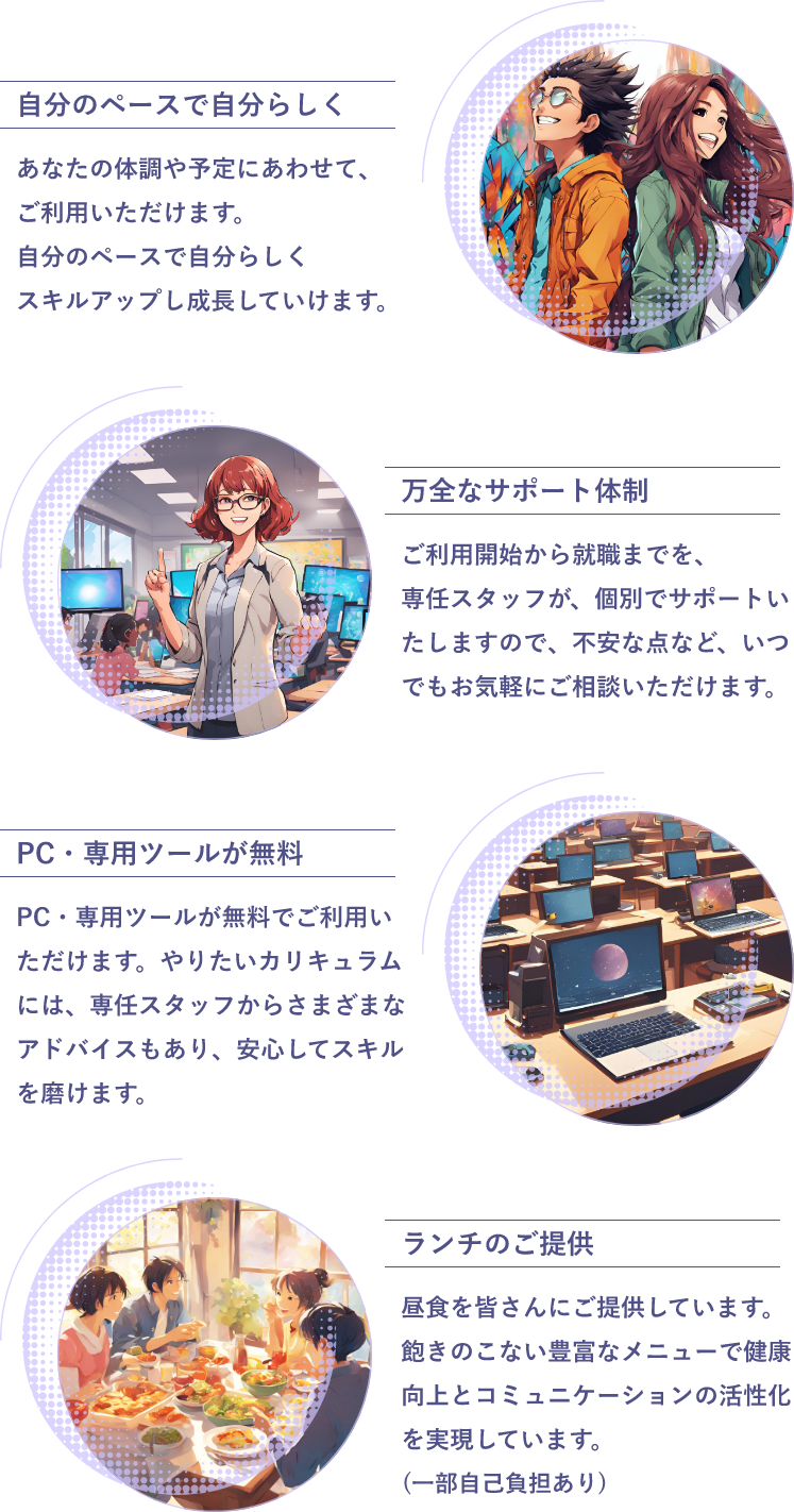 未経験でもあなたのやりたいことを、専任のスタッフがサポートしてスキルアップしていきますので安心です。